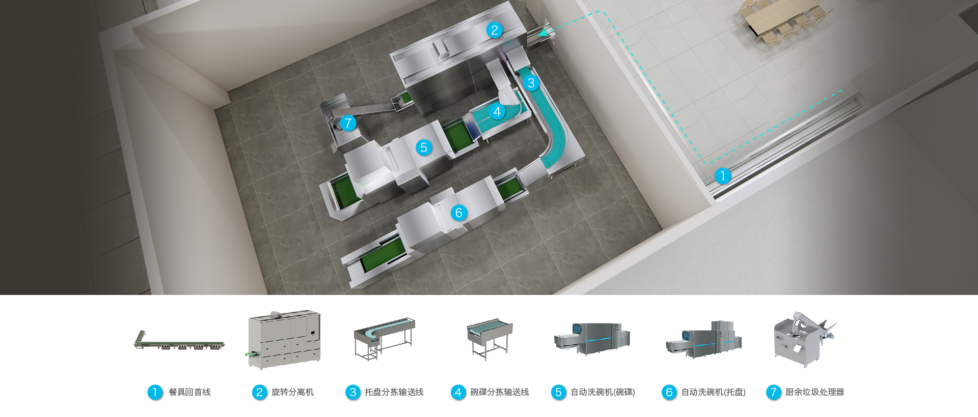全自动洗消系统,集餐具收纳、碗盘分离(碗碟和托盘)、食渣处理、碗盘清洁和碗盘收集等多功能于一体的收餐洗消自动化设备,具有操作简便、高度自动化、节省人工、节能高效和安全卫生的特点。
